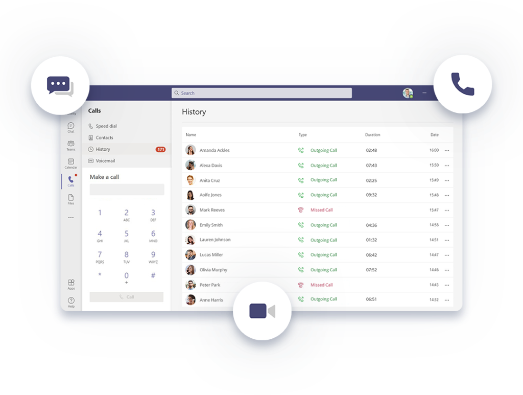 Employees can make and receive calls, access voicemails, and transfer calls without leaving the Teams interface. This ensures a smooth workflow, improving productivity by centralizing communication tools in one platform.